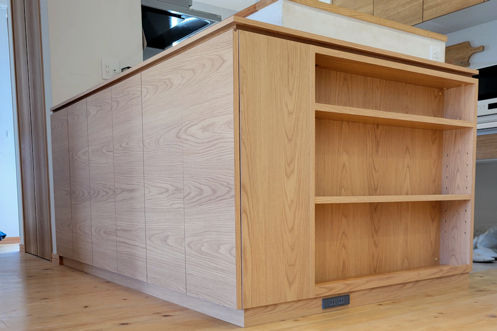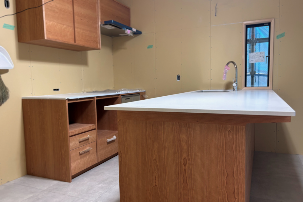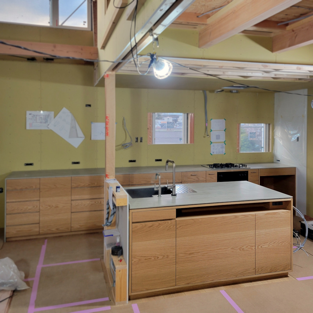 コスモさんからは以前に野副さんと共同で設計されたグレイジュのキッチンやタモのキッチンでお世話になっていたのですが、今回はコスモさんオリジナルの設計の住宅に設置させて頂くことになりました。