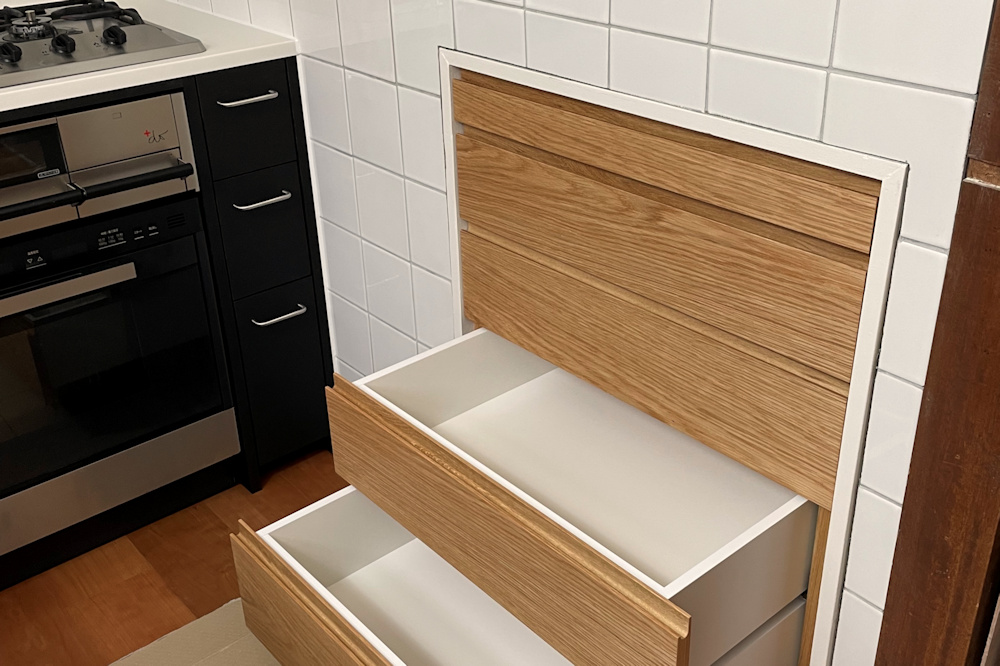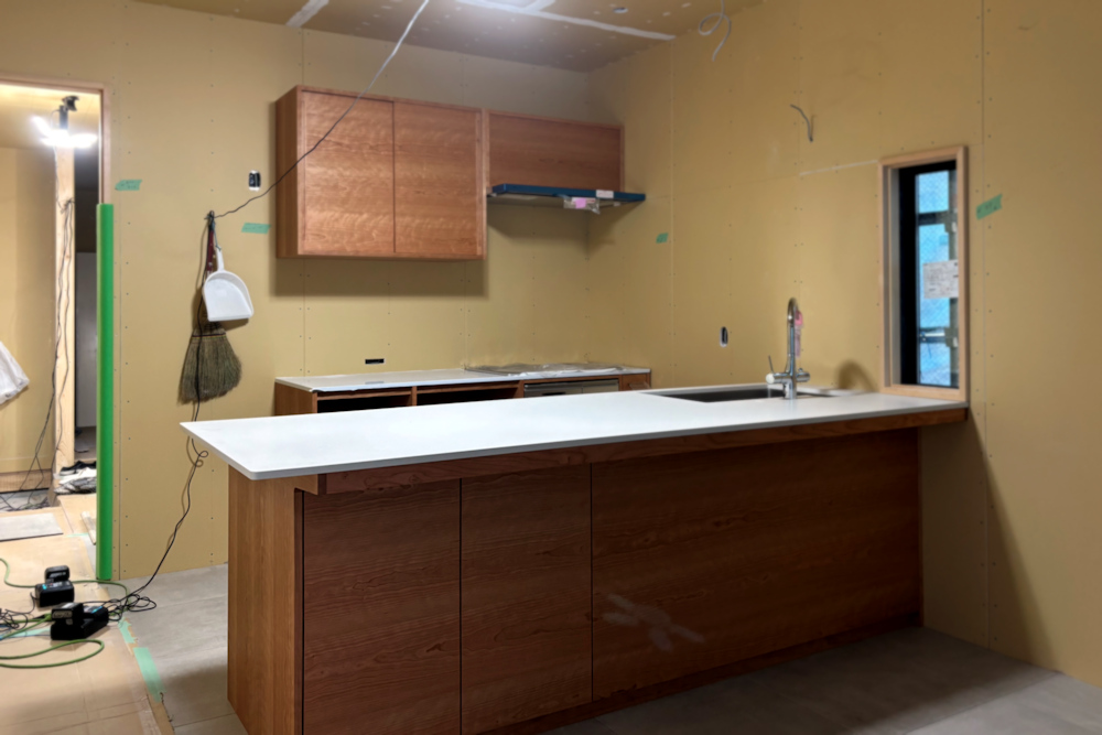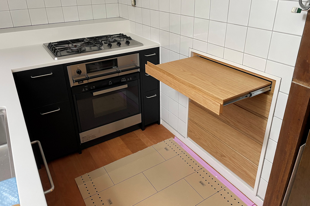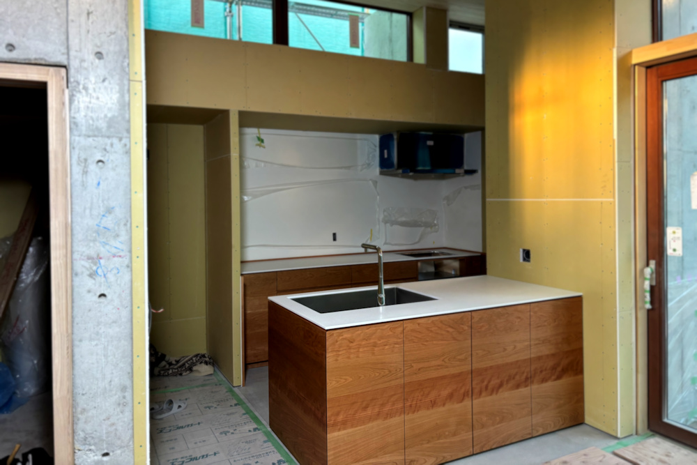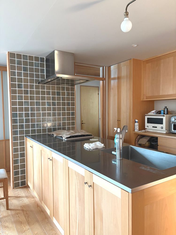 キッチン周りだけを新しくしたいということで、内装工事はいつもおなじみのkotiさんにお願いできたので、内装の納まりはひと安心。