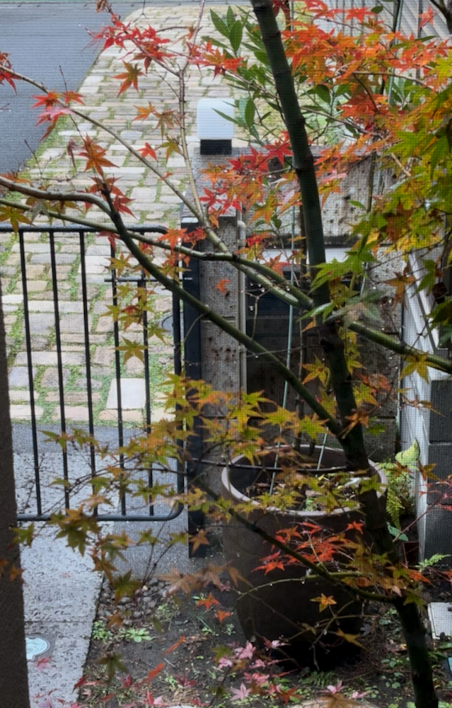雨の日があるとすぐ葉が落ちてしまいますが。落ち葉拾いは手がかかりますが、地面に落ち葉が広がる様子を見るのは色合いが美しくて好きです。