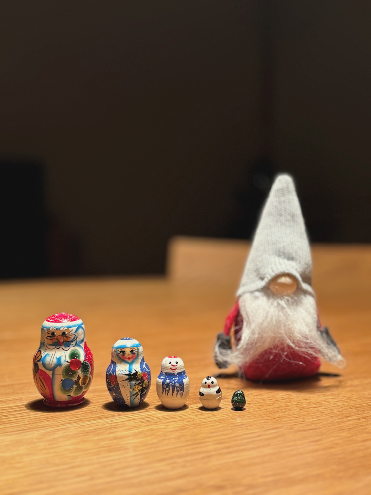 お土産は、ノームとマトリョーシカ。どちらも我が家には初アイテムでした。