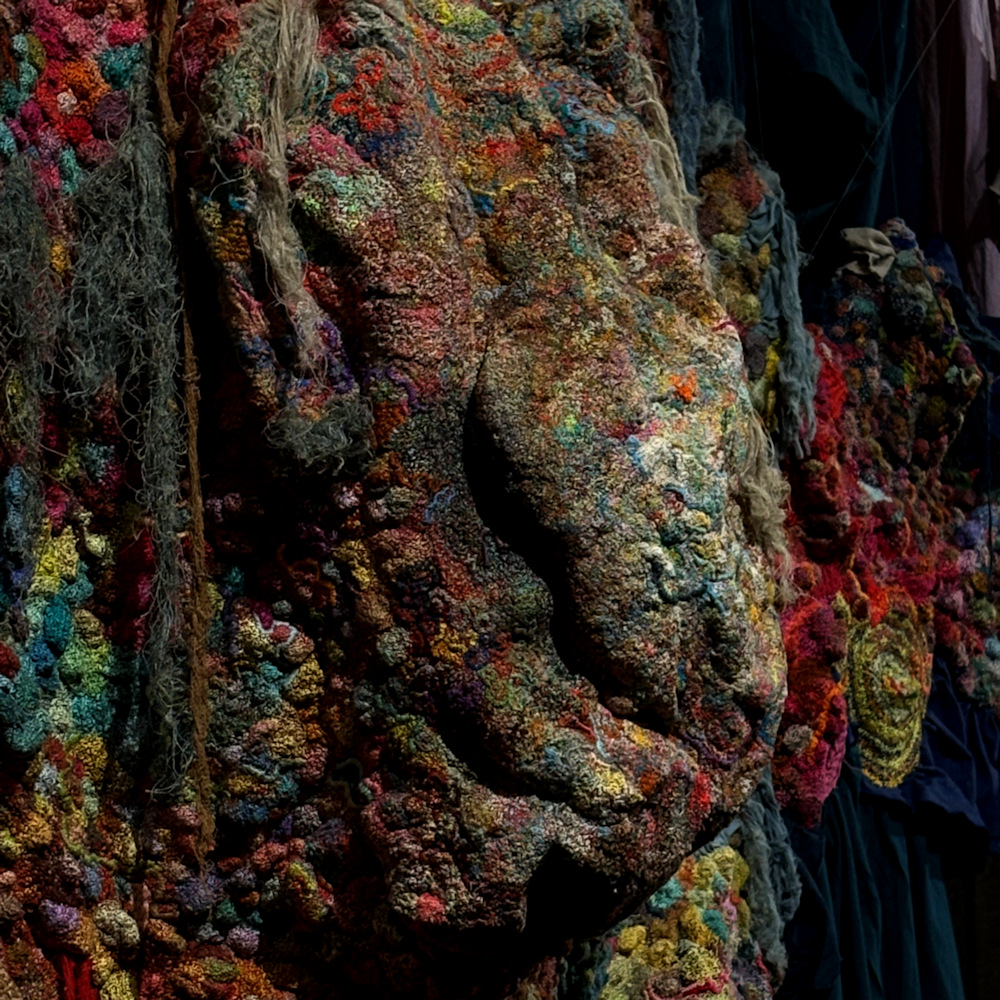 Oさんはたて糸が見えないようにしっかり編まれていました。毛糸の色味の濃淡がすてきでした。