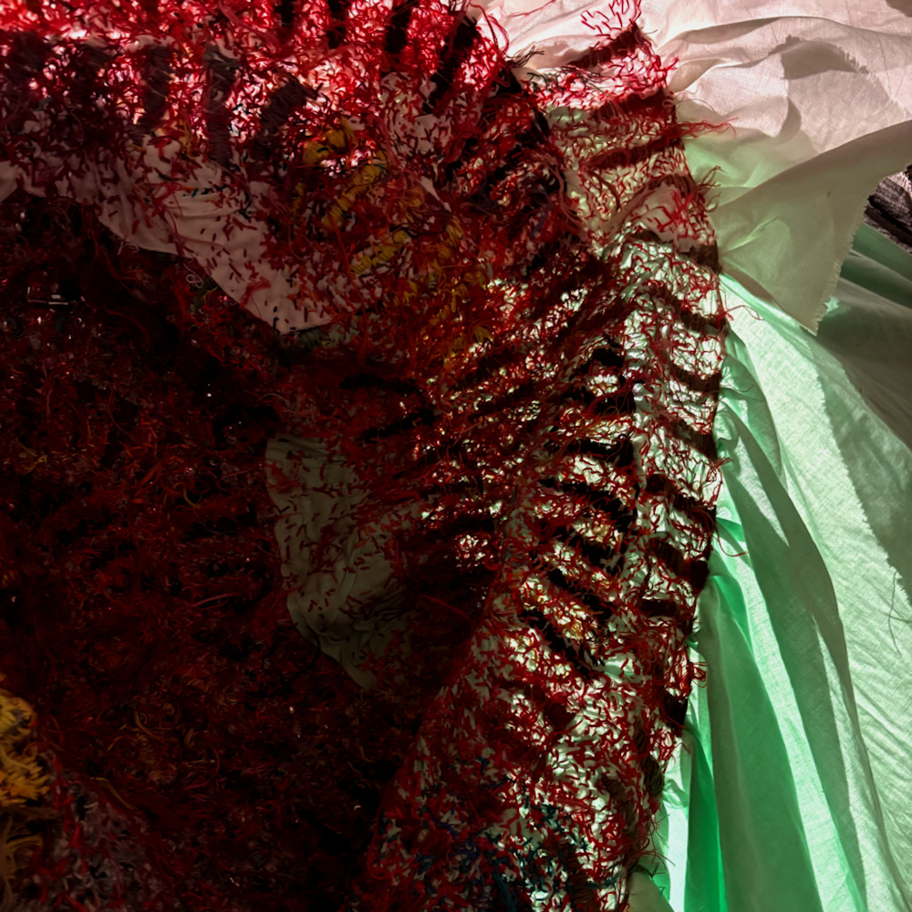 Oさんはあえてたて糸が見えるくらい緩やかな織りに。糸の細い太いが模様のようになっていい表情でした。