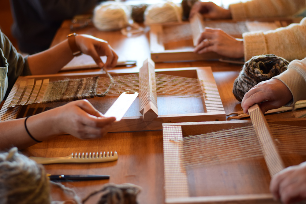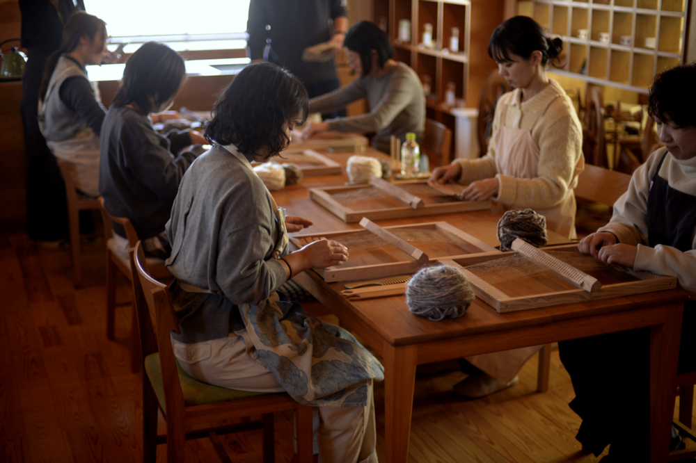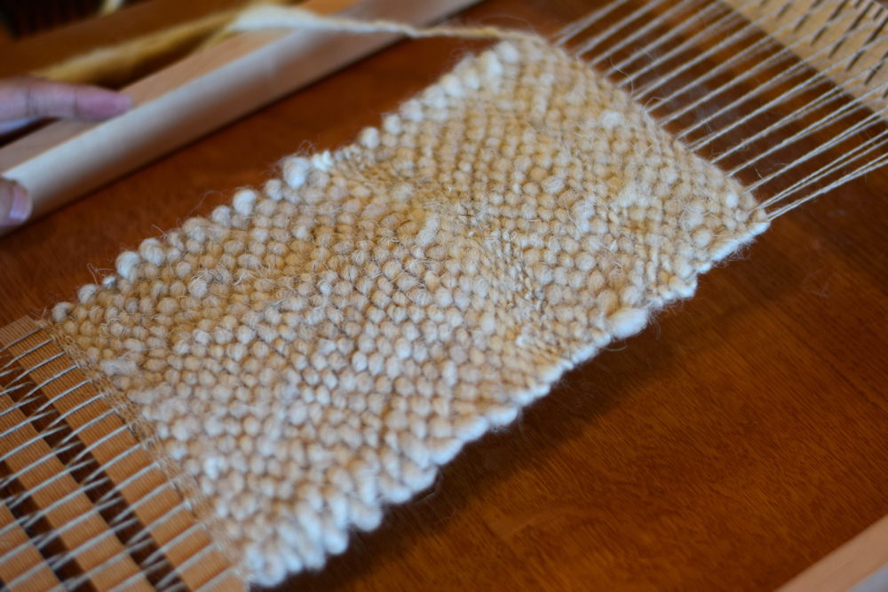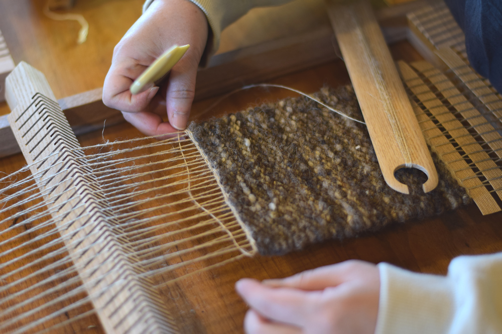 午前中の時間では紡ぎきれなかった羊毛もありましたので、オガワさんが持参された毛糸を足しながら織っていきました。皆さん黙々と作業されて、織りの作業は進みが早かったです。
