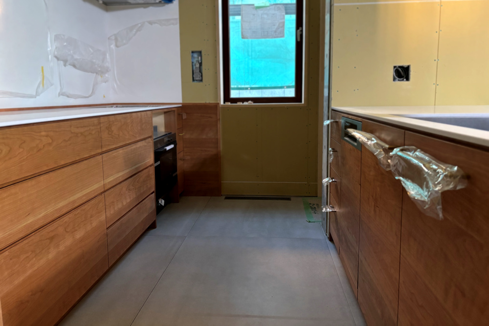 これでひとまず終了。あとはもうしばらくしたら再び残工事を行なって完了の予定。キッチンの設置工事は通常の家具と違って今回のように段取りよく数日に分けて行なうことが多いのです。頑張ります。