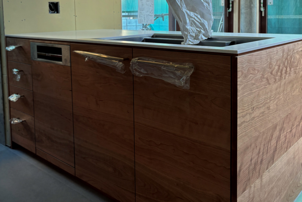 今年初めての納品は、内田雄介さん設計の空間に置かれるDさんのブラックチェリーのセパレートタイプのオーダーキッチンです。
