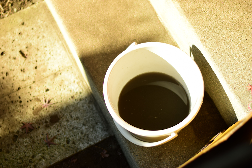 バケツの水が真っ黒です。一年の汚れを感じますね。