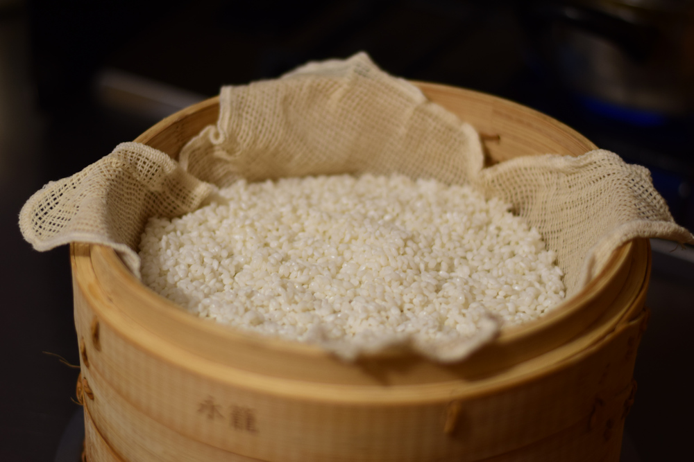 蒸し終えて干しておきます。この間にお昼休憩となりました。