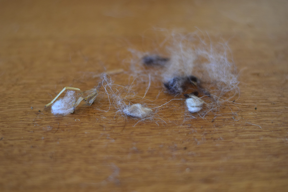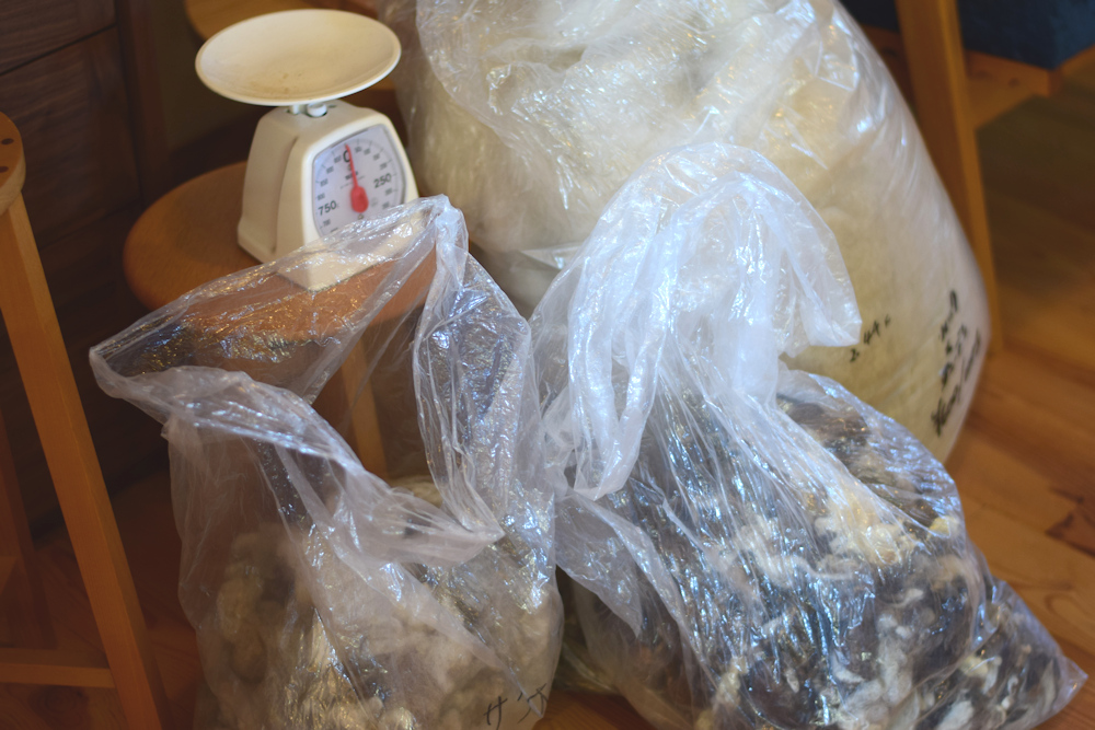 洗われている羊毛ですが、梳かしていると、草、土、種などいろいろなものが出てきます。生活していた羊の毛をいただいているのだなと実感できて愛おしく感じます。