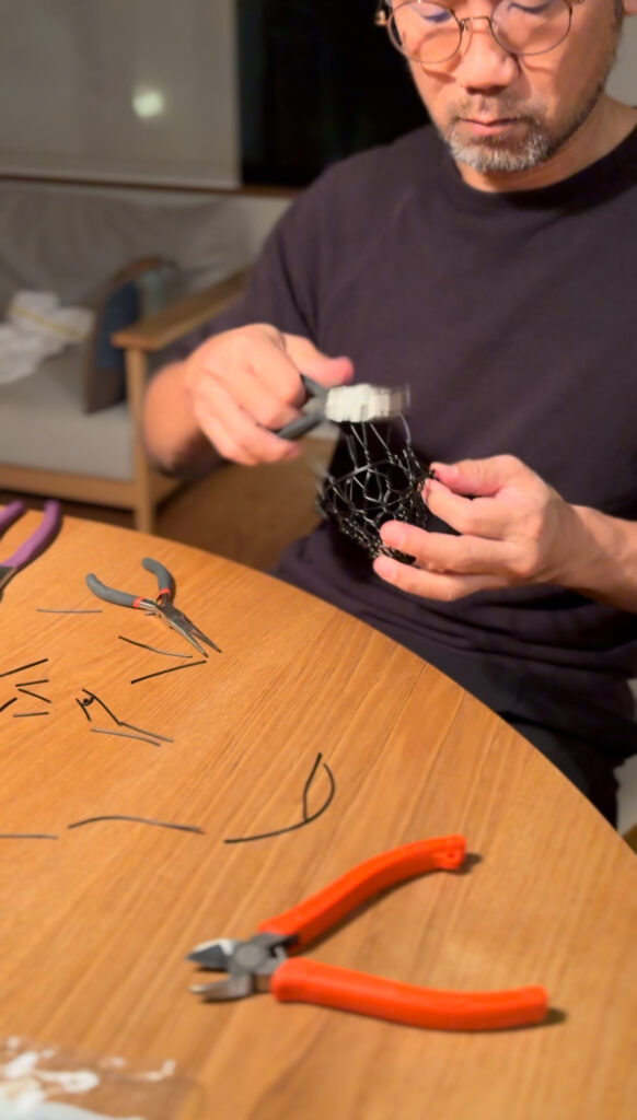 「もっと細いワイヤーでよかったんじゃないか。」「手が痛くなってきた。」とぶつぶつ言いながらも、