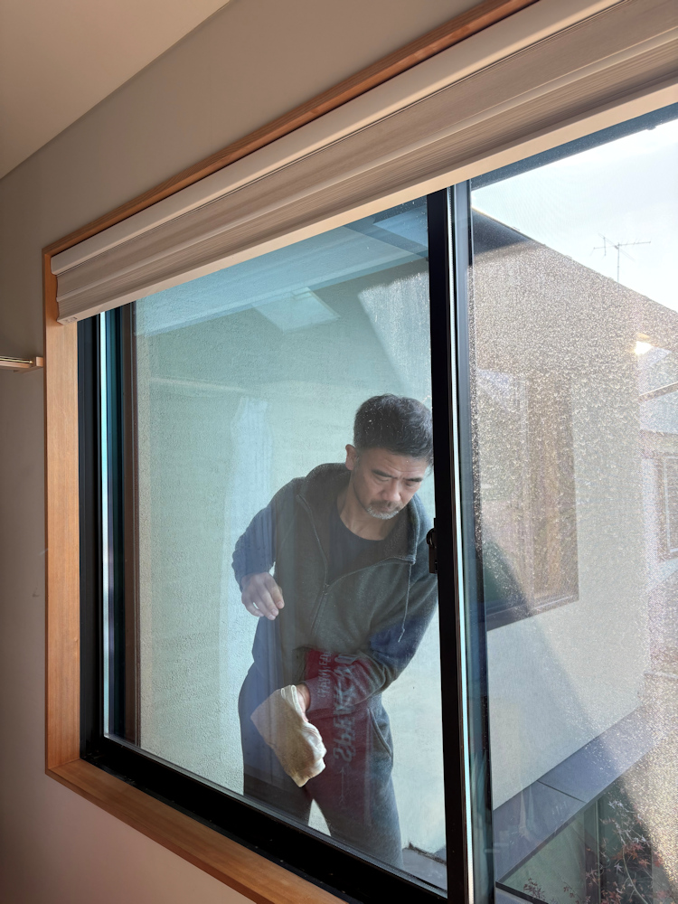 上の方の手が届かないので、窓拭きもダイスケさんがしてくれました。屋根の上に立ってしてくれています。