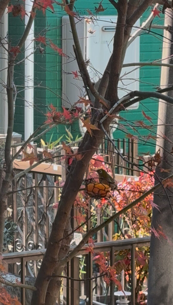 メジロちゃんも来てくれます。こんなに小さい体で生きているかと思うと愛おしくなりますね。