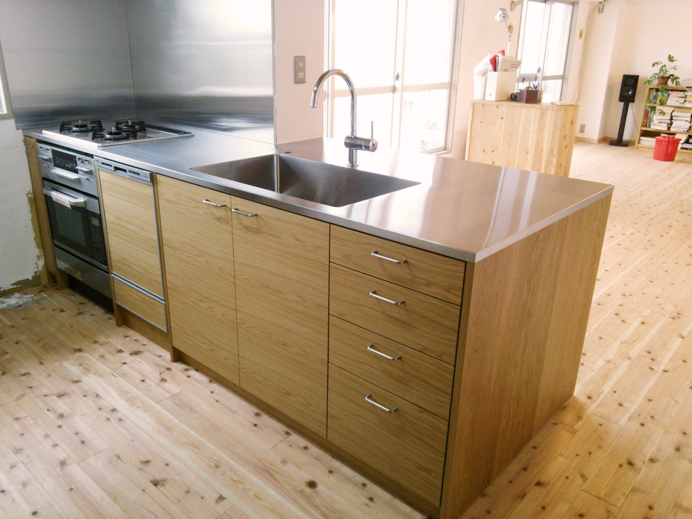 昨日カナイ君とノガミ君が伺って残った細かい作業を終わらせて無事Tさんのキッチン設置工事は完了。あとは本日設備屋さんやガス屋さんが各種の配管接続工事を行なってくださってすべて完了の予定。