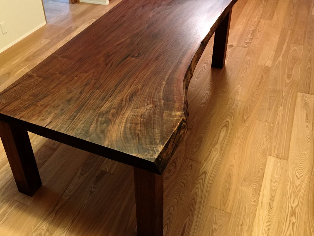 エバーさんから預かった天板に足をつけて大きなダイニングテーブルに加工させて頂きました。