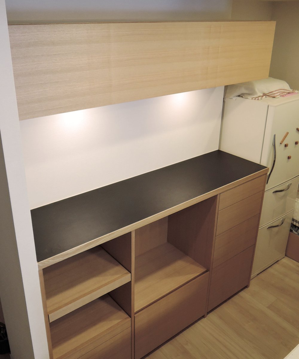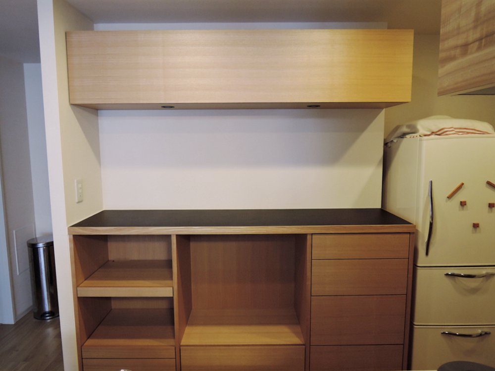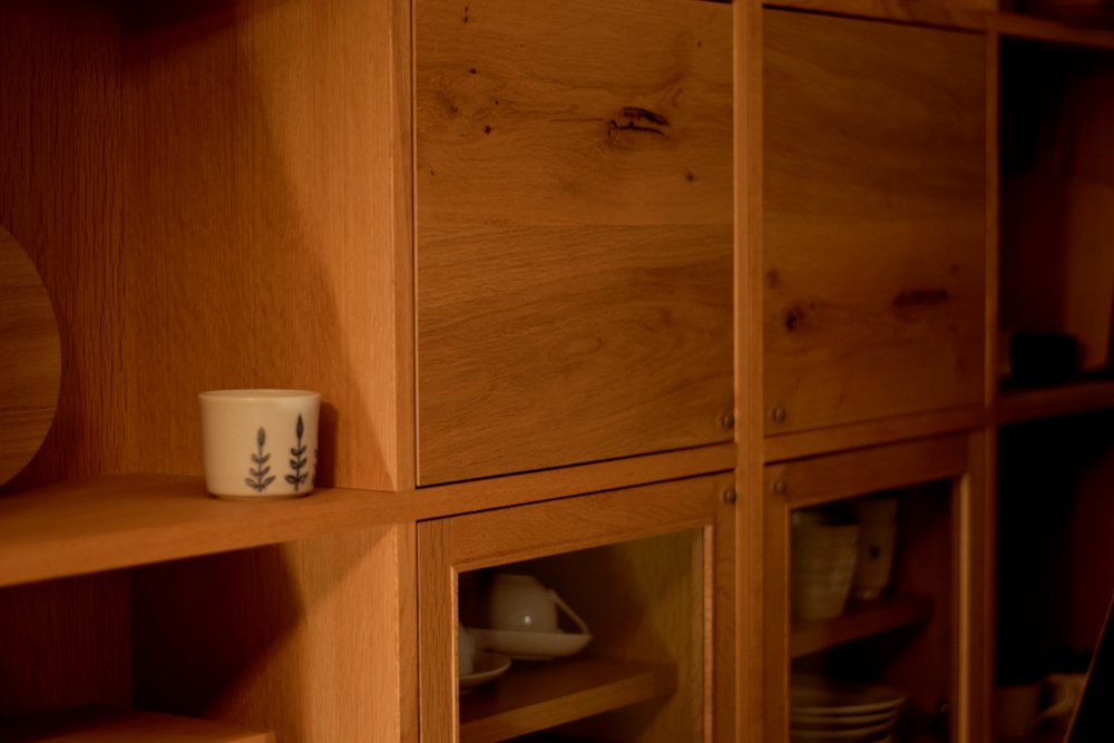 もともとカウンターだけだった場所を生かして使いやすい収納に、ということで、最少の加工で最大の魅力になるように努めました。
