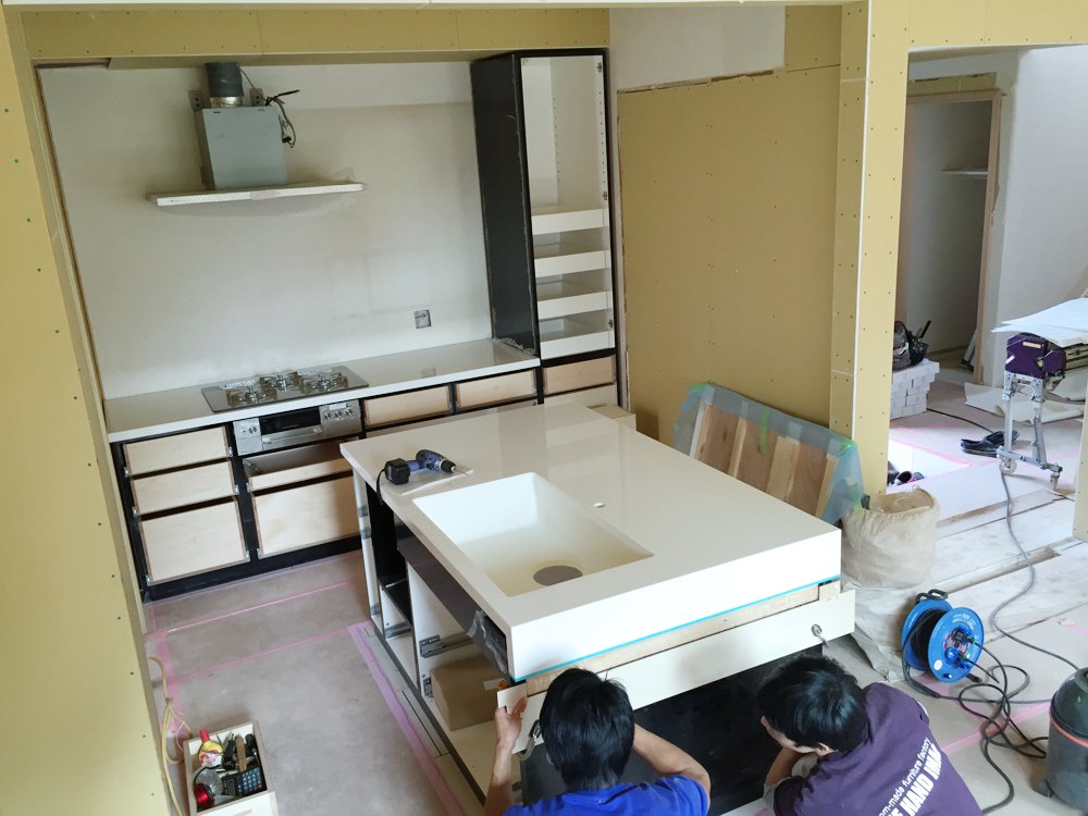 残すは、ピカピカの扉たちの取付と真っ黒でピカピカしたテレビボードカウンターの納品だけ。もうすぐ終わりです。