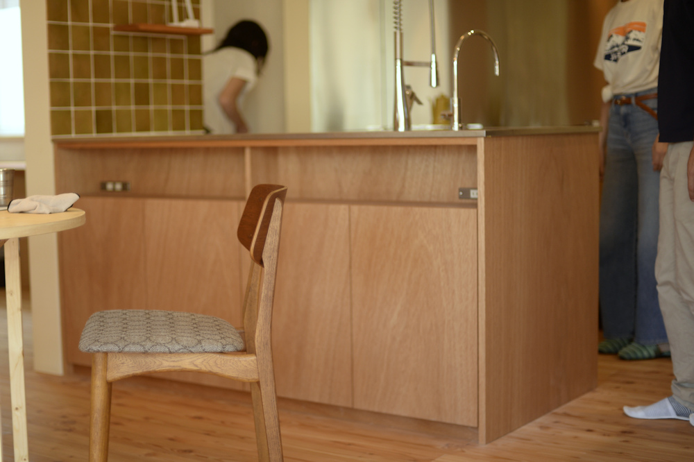 お二人で塗装したキッチンも最後の軽い研磨までしっかりと済ませてあって手触りよく仕上がっていて、とても心地の良いキッチンになっていました。