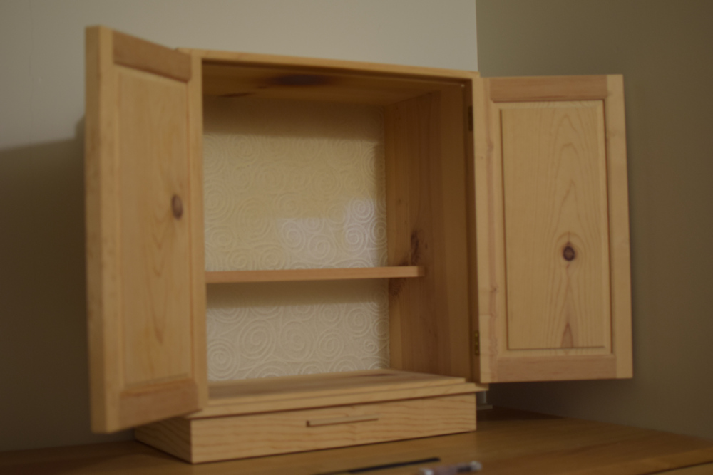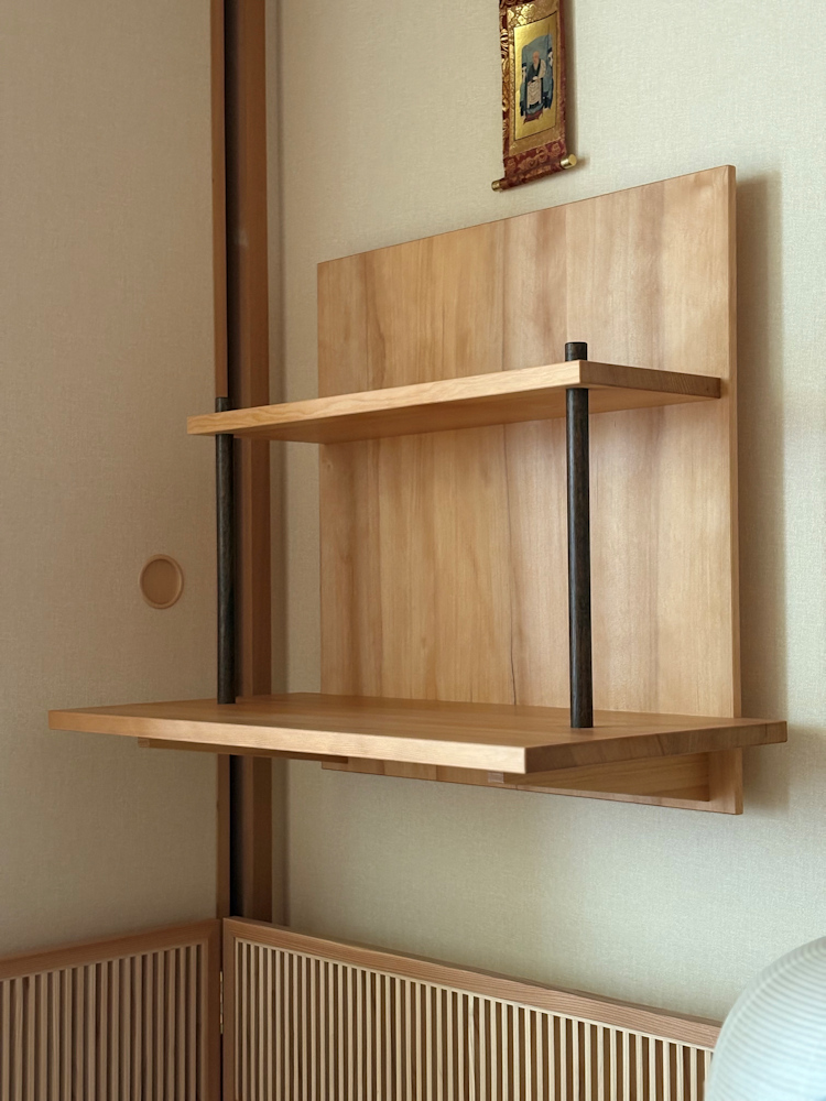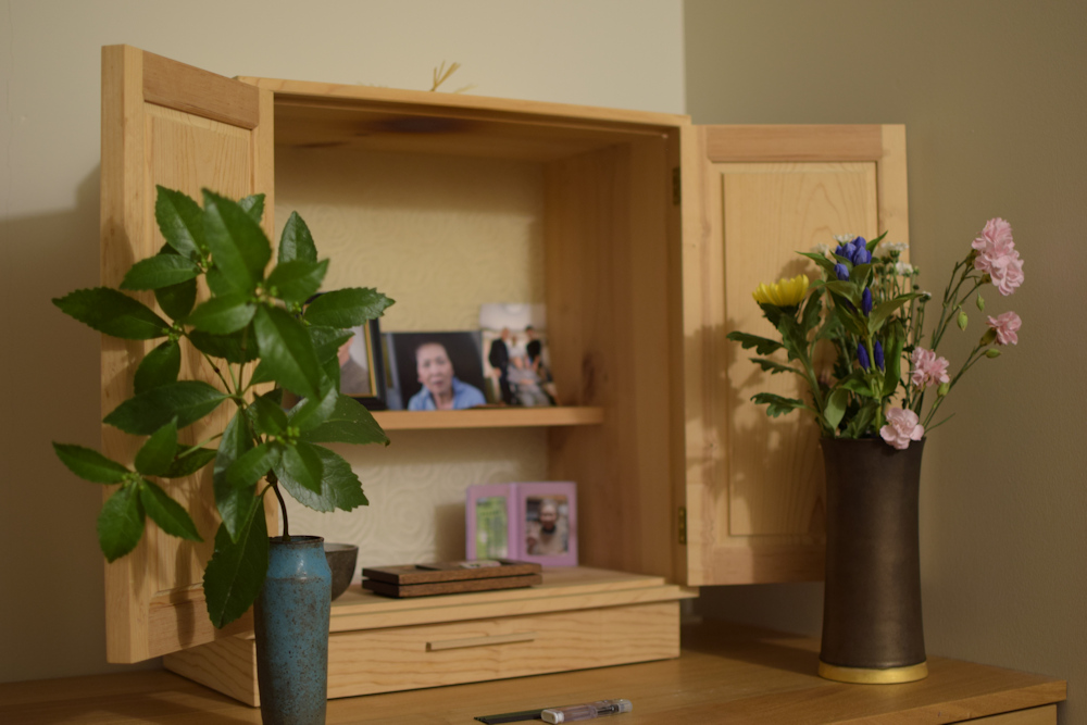 実家のお仏壇はツガでオイル塗装、我が家の厨子は松で無塗装で節のあるもの。