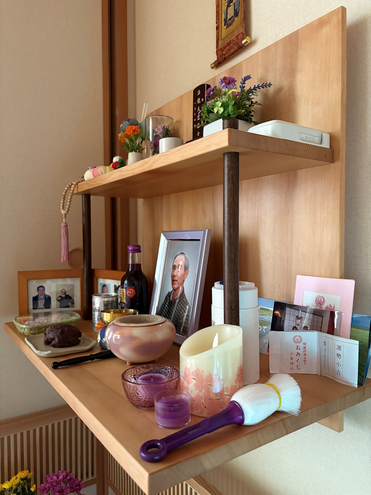 実家に戻り、お仏壇のお掃除もしました。飾られているものを全部移動して拭き掃除です。