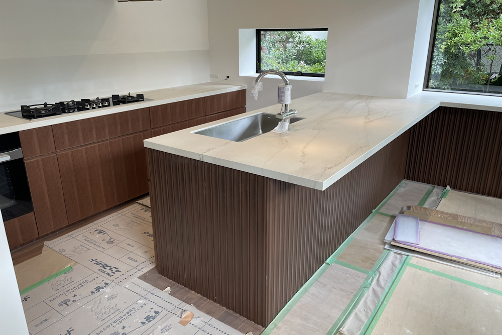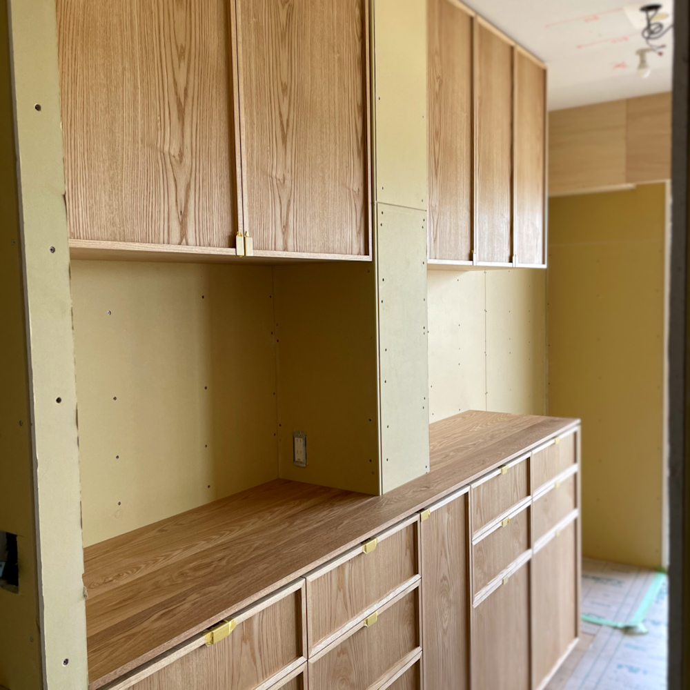 先週から取り掛かっていたCさんのキッチンとカップボードの設置工事が無事に終わりました。