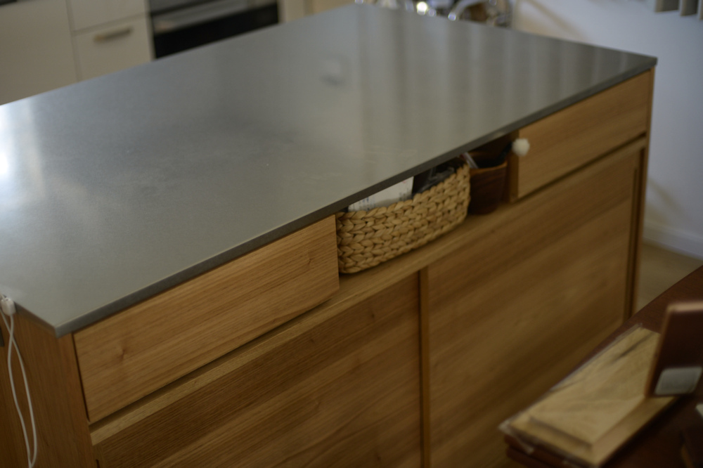 そういう少し変わった空間でしたのでステンレスの天板の設置に少し難儀しましたが無事に設置は完了。