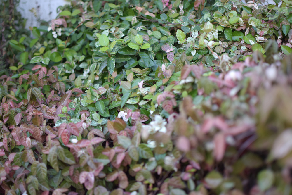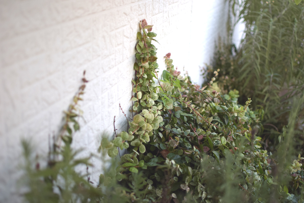 この場所に工場を移転してからは22年目になりますが、その時に植えたシンボルツリーの桂の木が割れて枯れ始めてしまっていて、そろそろ植え替えを考えなくてはいけなさそうです。ハツユキカヅラだけは元気いっぱいで、気づくと新たに壁の上の方に伸びようとしていること気づきました。