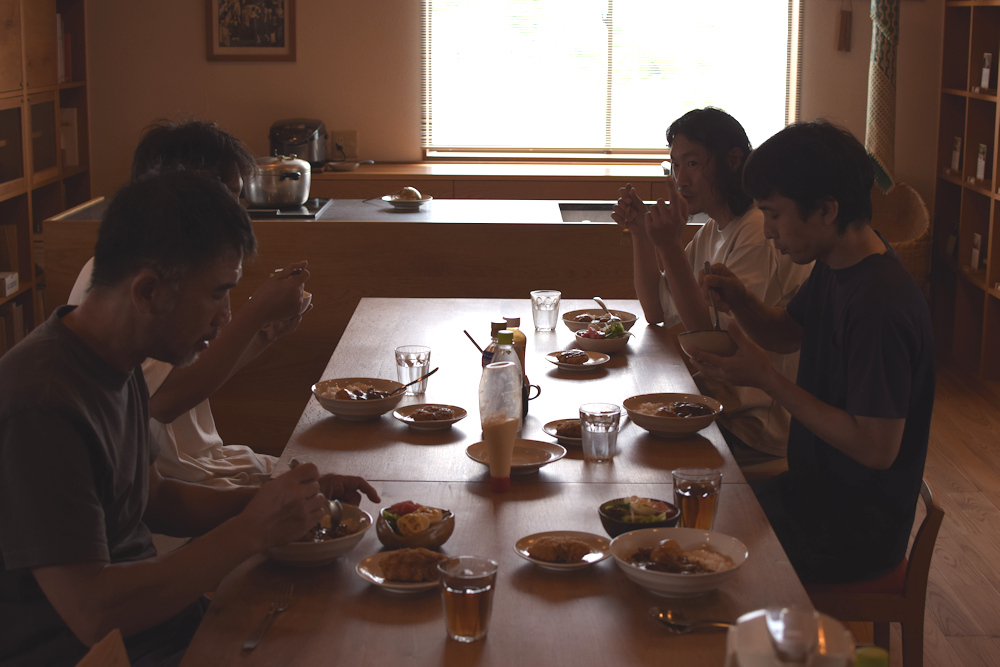 決算後に報告も兼ねてみんなで話す機会を作ろうということで、今日はショールームにスタッフみんな集まり、お昼ご飯にカレーライスを食べることにしました。