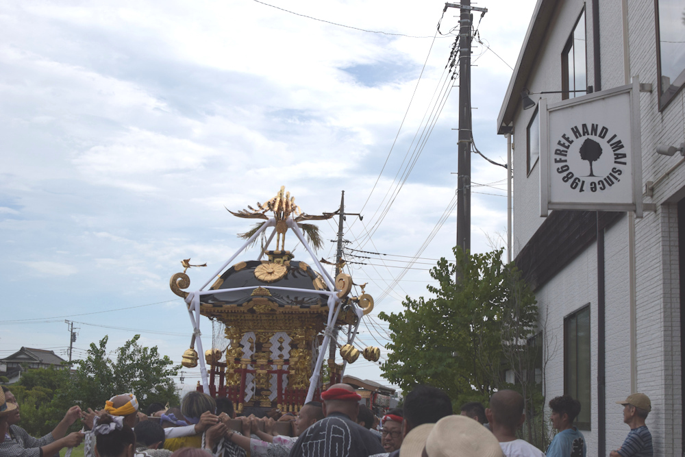 会社の前の空き地が西町のお神酒所になっていまして、お神輿が来る時間になりますと、お囃子や担ぎ手さん達で大賑わいになります。