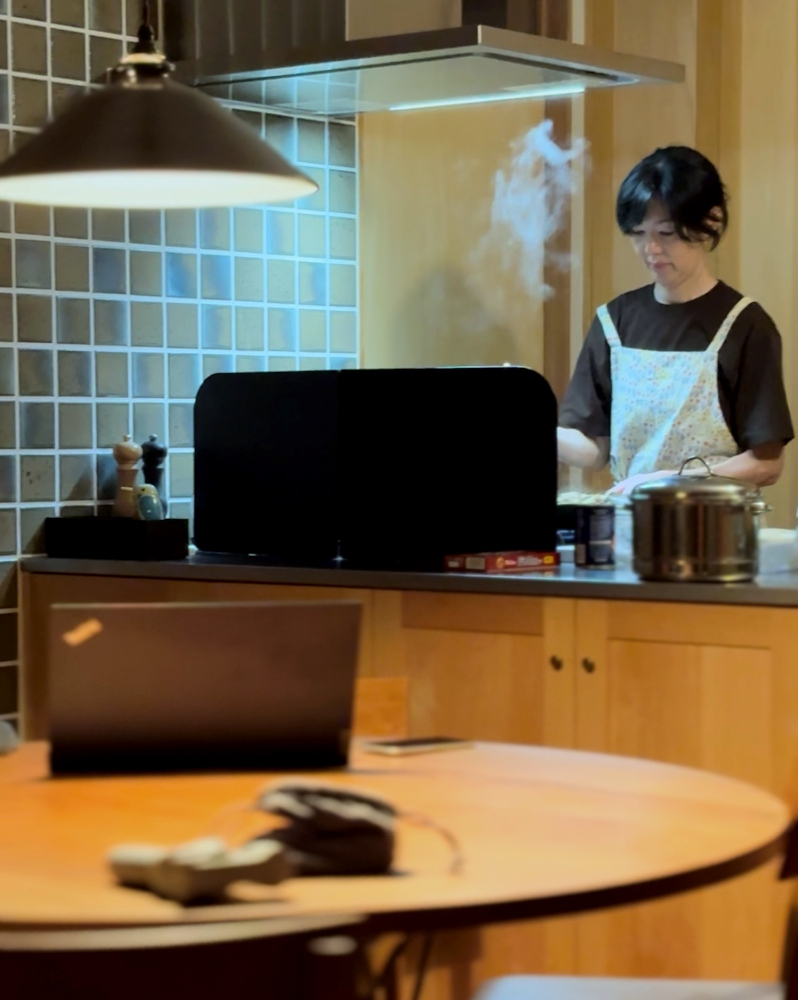 動画を撮りながら、「こういう風に載せたいよね。」とダイスケさんと話しているのをキッチンの端っこにいる鳥ちゃんも聞いているようです。
