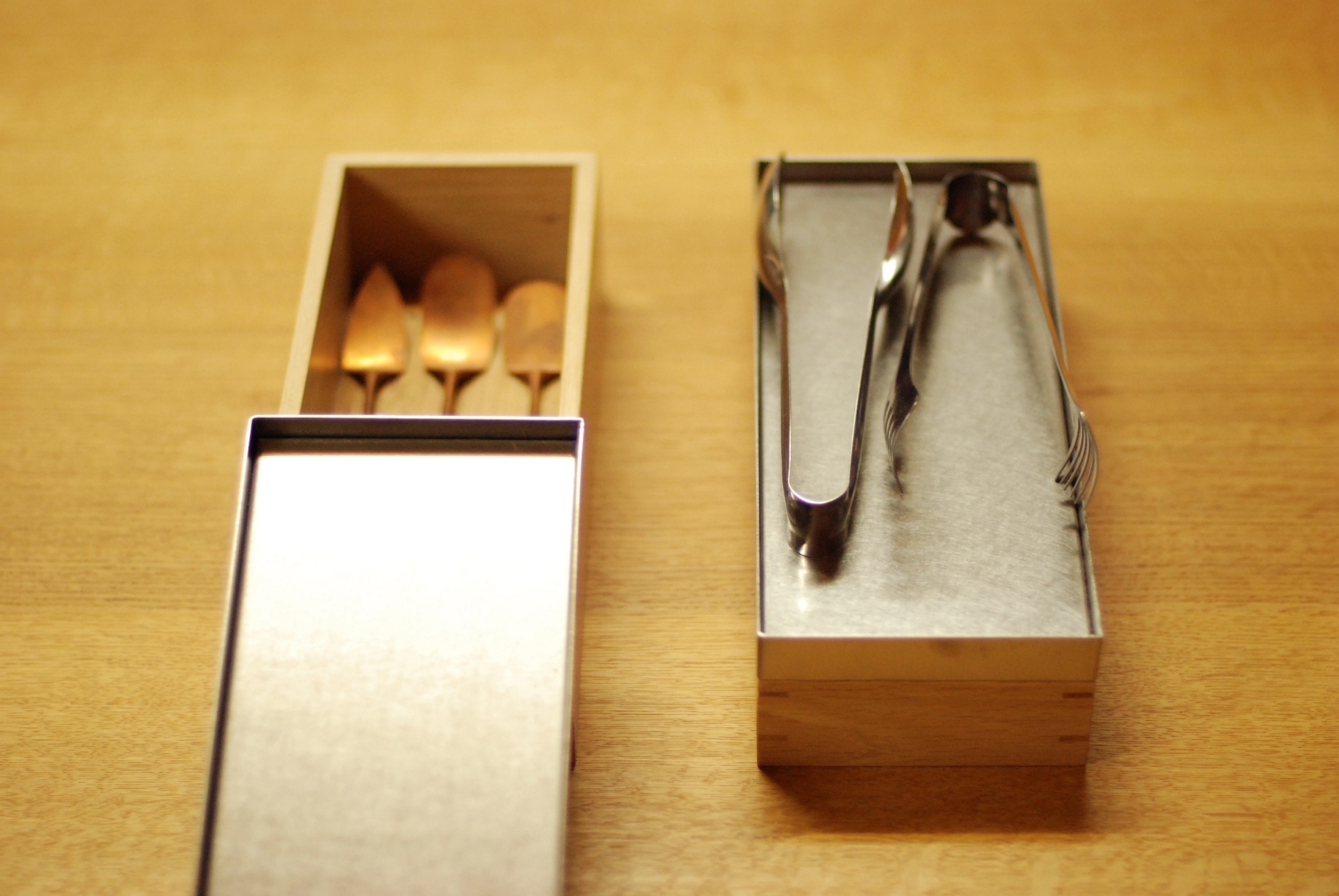 今まで家具やキッチン作りで培った皆様からのご意見を元に、家具作りで生かした材料の用い方・特徴のある仕上げ方など「家具職人が作る木製雑貨」をコンセプトにもの作りを続けています。手加工と機械加工を組み合わせてオリジナルの形を作り出しています。仕上げは木肌を感じられるオイル塗装をしてあります。家具製作に用いることの多いナラ・チェリー・ウォルナット材など広葉樹の無垢材を使用しているので、お手持ちの家具にも合わせやすく、インテリアにもなじみやすいものになっていると思います。木を使っていますので、水分をつけっ放しにしてはいけない・衝撃を与えるとへこんだり、傷ついたりしますが、少しの傷ならやすりがけとオイルの塗りこみできれいになりますし、経年変化で色味が変わってきたり、傷やへこみも味わい深い印象を与えることもあるので、暮らしの中で永く使っていけるものになるのではないでしょうか。是非この機会に、手に取ってご覧ください。