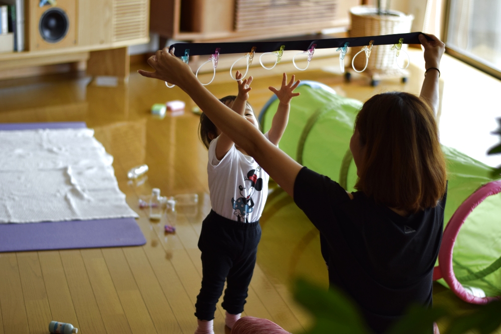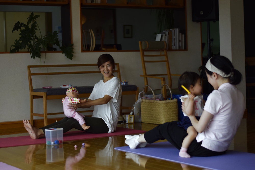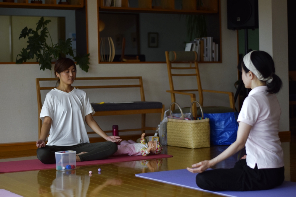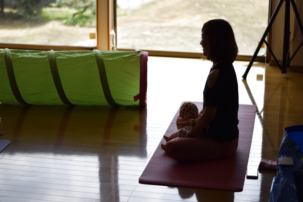 はじめさんのクラスは、家でヨガの時間を作ってやってくださいという教え方ではなく、「子供を抱っこする時にはこのポーズができます。お母さんのウエストも引き締まりますし、お子さんも落ちないように自然と身体でバランスをとるので運動になりますし、いつもの抱っこと違うので喜びますよね。」と、生活の中に取り入れていく形で教えてくださるので取り入れていきやすいと思います。