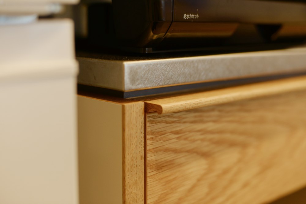 ナラ板目材とステンレスヘアラインのオーダーキッチン