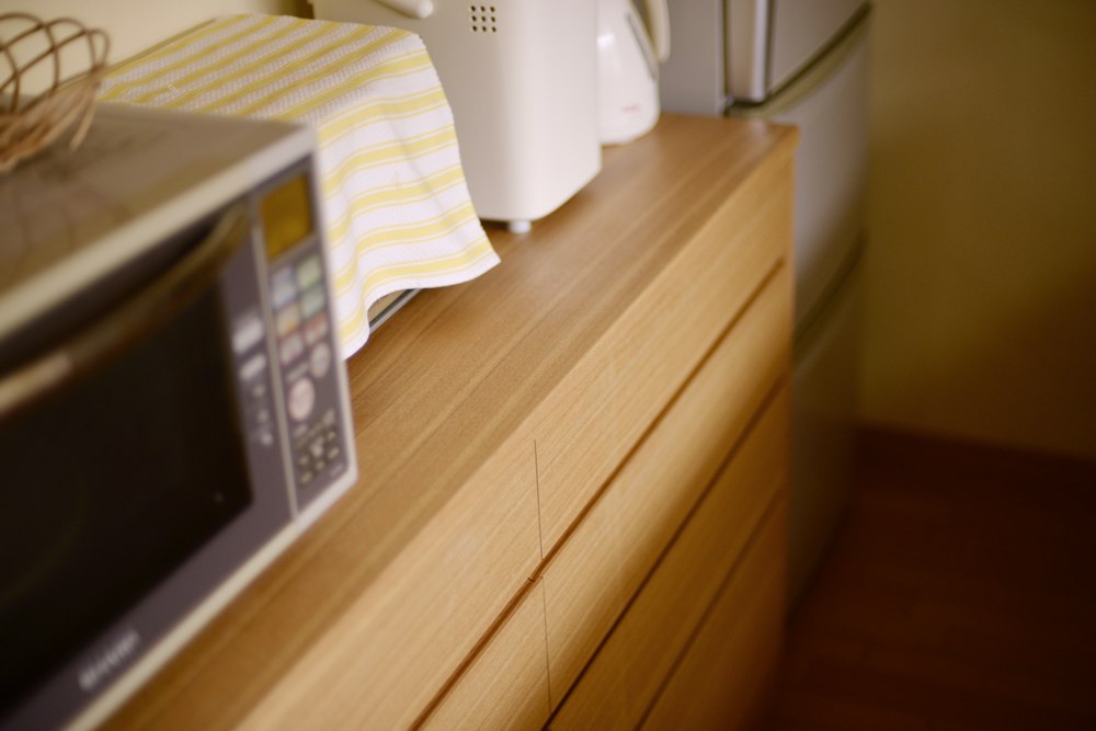 通路を生かす形にすると、この食器棚の幅の2/3ほどの幅しか取れなくなってしまいそうでしたので。