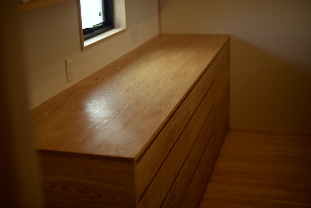 最初に「加賀妻工務店」という名前を耳にした時に感じた重みのある名前。いつか関わりが持てたらうれしいな、なんてあの頃思っておりました。20年近く前のことでしょうか。今から12年前に二宮のKさんの家具を作らせて頂いた時に初めてお付き合いさせて頂くことになりまして、当時は設計士さんという肩書だった高橋社長の鋭い眼光のもとでいろいろと緊張しながらお話させて頂いたり、豪放磊落な印象の監督のIさんの様子を昨日のことのように思い出します。