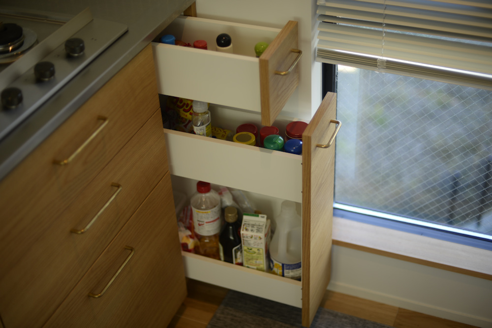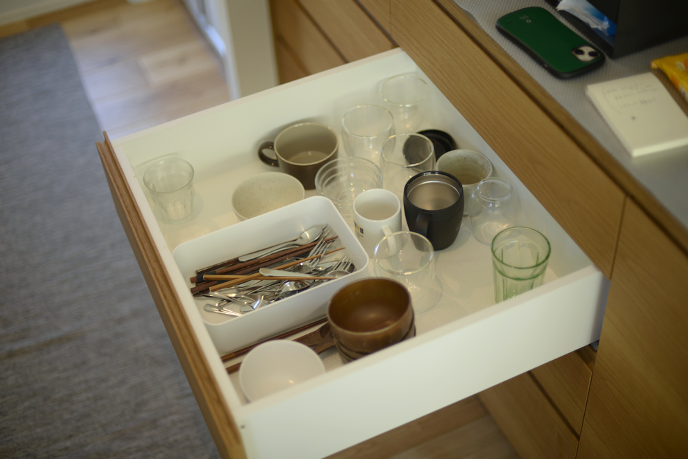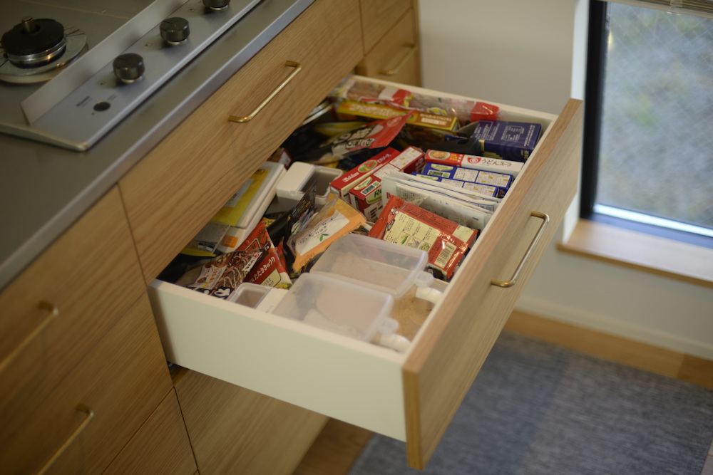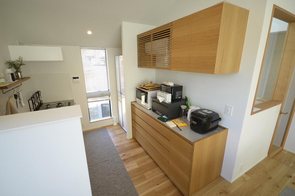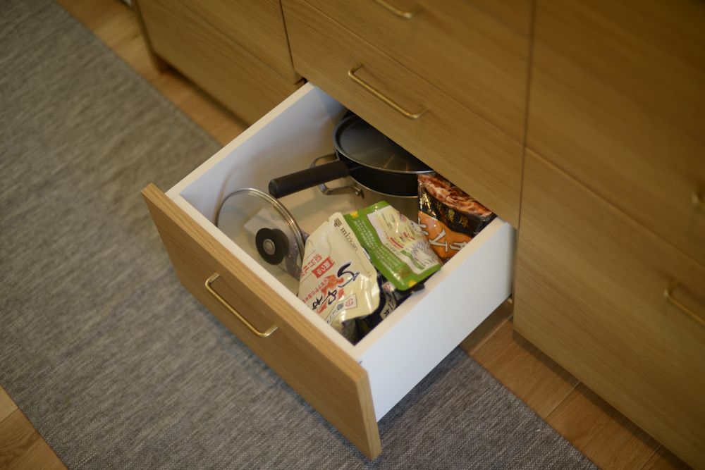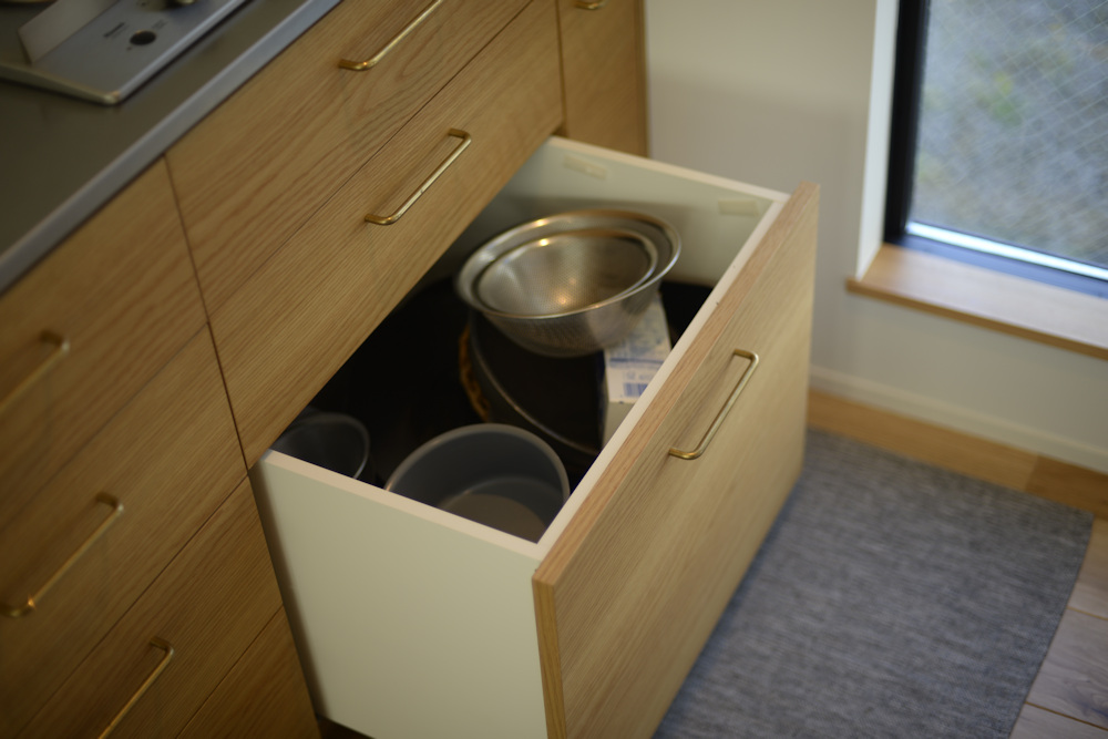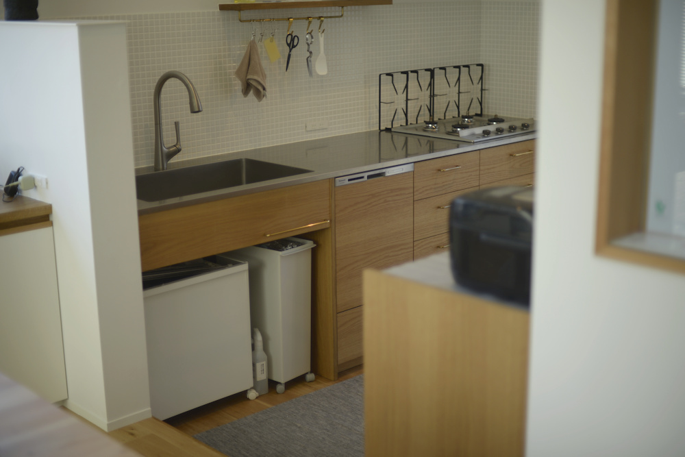 ちょうど住み始めて1年ほどの頃に伺わせて頂いたキッチンはまだまだ真新しく、収納スペースもがらんとしたままだったりして、ここからさらに居心地が整っていくのでしょうね。