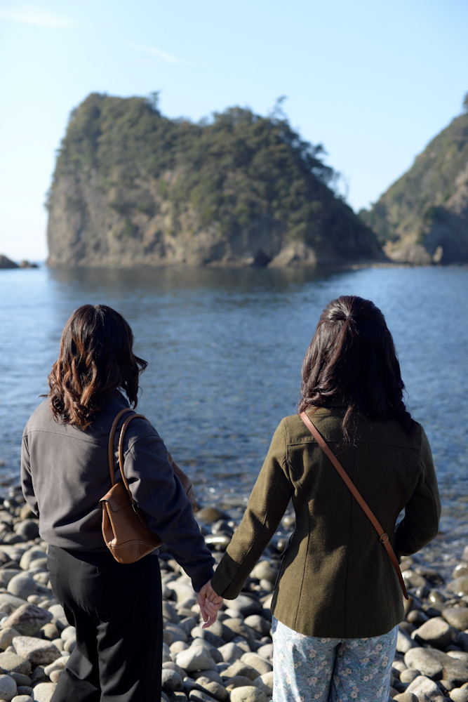 足元の石が不思議にすべてすべすべとまん丸くて(足をとられてけっこう歩きづらい)、海の水はたいへんきれいで、上から見下ろすと小さく見えていた島は魅力的に大きくて、とても不思議な場所。次は向こうに渡ることができる時に来てみたいなあと、思いを馳せて宿へと戻りました。(ハルチィはいつも仲良しでうれしい)