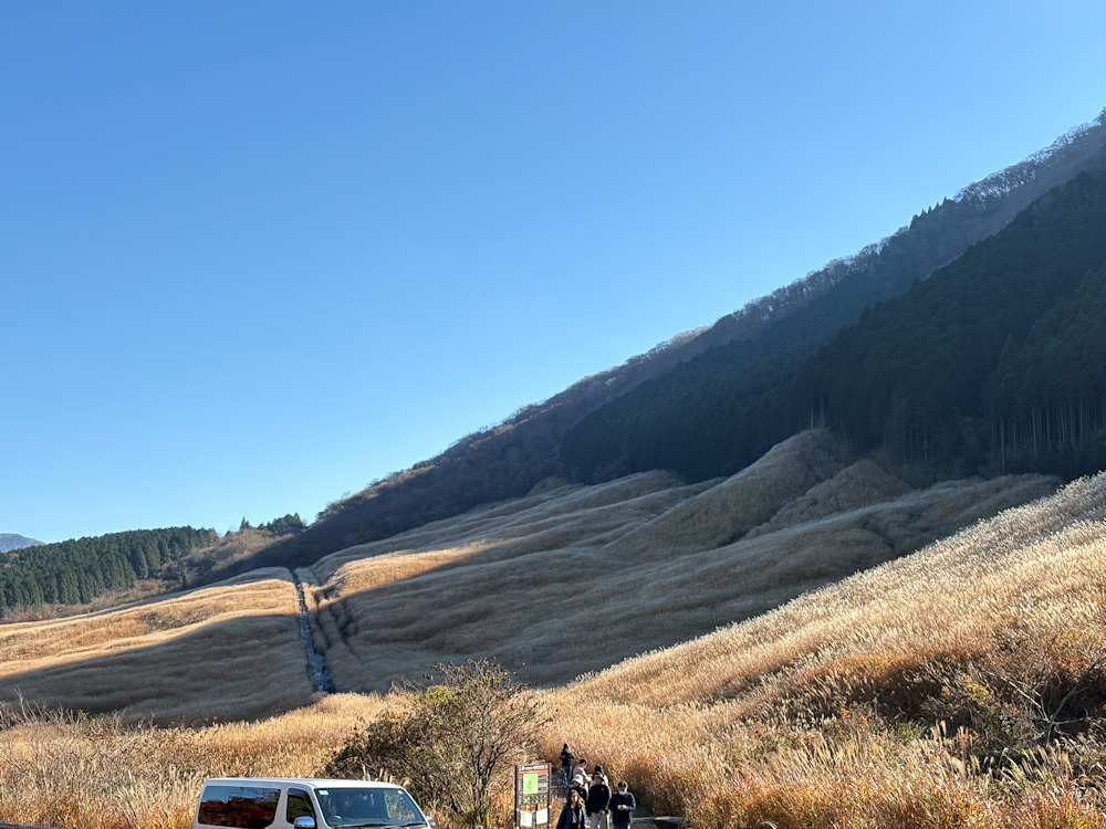 3連休の初日11月22日に出発したのですが、お天気が良い日でしたので東名高速の下りは朝からすでに渋滞が始まっていました。それならせっかくだから箱根の紅葉を見ながらドライブしていこうという話になり、小田原厚木道路から箱根へと、そして仙石原のすすき野原をお散歩しました。