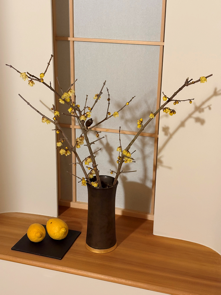 手塚さんのナミビアシリーズの花瓶にロウバイを飾りたいと思っていたので、お似合いでうれしいです。