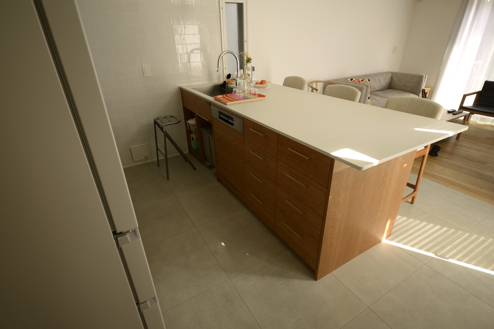 途中でご主人が、「みんなを呼んでキッチンを囲んで食事ができる場所がありましてね。このキッチンもそういうワイワイと囲める場所にしたかったのですよ。」と楽しそうにみんなで食事をしている写真を見せてくださいました。「そういう場所をこうして実現してもらえたので、とてもうれしく思っています。」とうれしい言葉を頂けてひと安心。