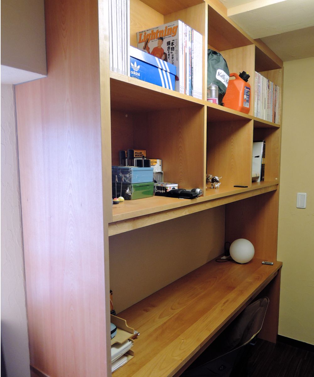 先日、本棚とデスクを設置させて頂いたKさんのところに今日は建具の取付。建具って1枚の板なのですが、なかなか作るには工夫が必要なので、いつも依頼を受けるのに少し足踏みしてしまうのです。