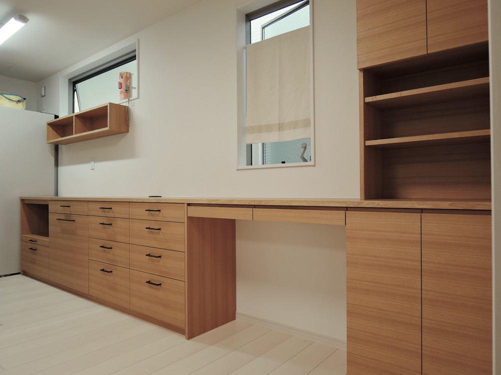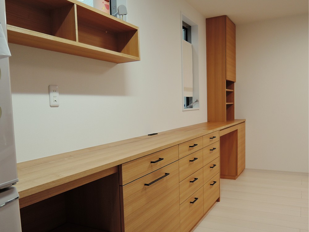 Tさんとは、この家具のボリュームの割には打ち合わせがとてもすんなり終わってしまったところがあって、珍しいなあという思いがあったのですが、取付のあとにいろいろとお話をお聞きしますと、家のことはご主人がすっかり決めてくれるのだそうで、そしてそのご主人が元畳屋さん。しかももともとはこの工房からそれほど遠くない場所で仕事場を構えていらしたそうで、もしかしたら同じ現場ですれ違っていたかもしれません。